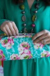 - Add a pop of color and a touch of feminine charm to any casual outfit with this floral print clutch bag from Amy Butler for Kalencom.