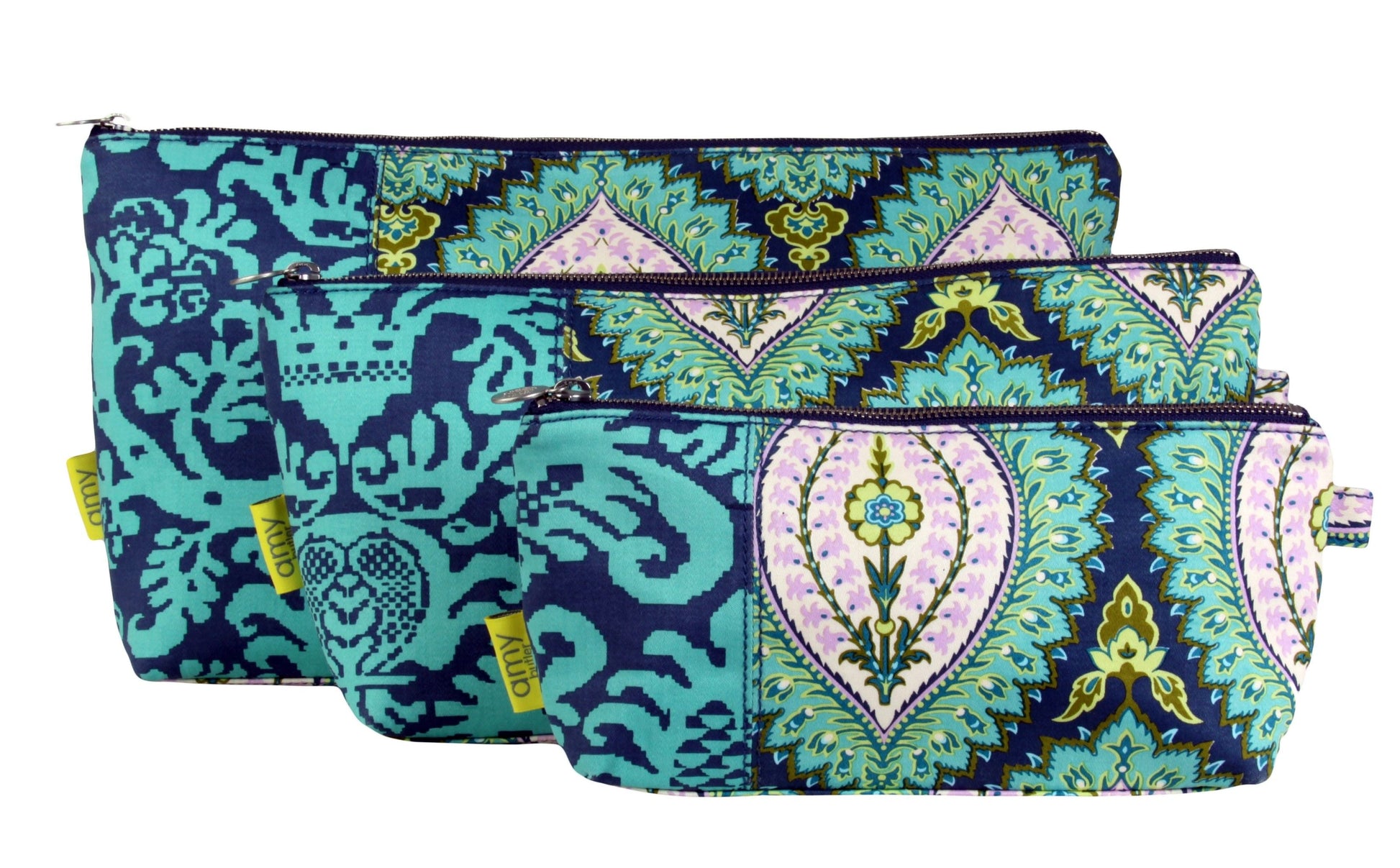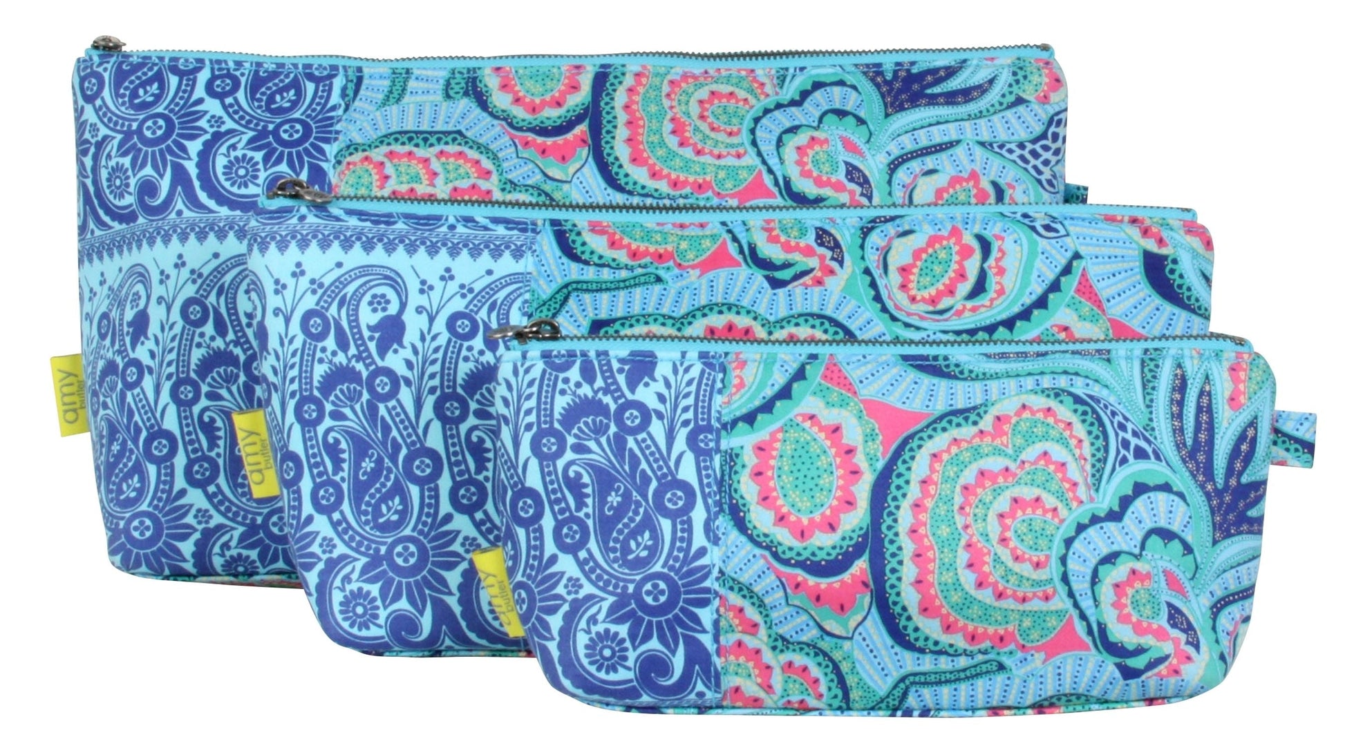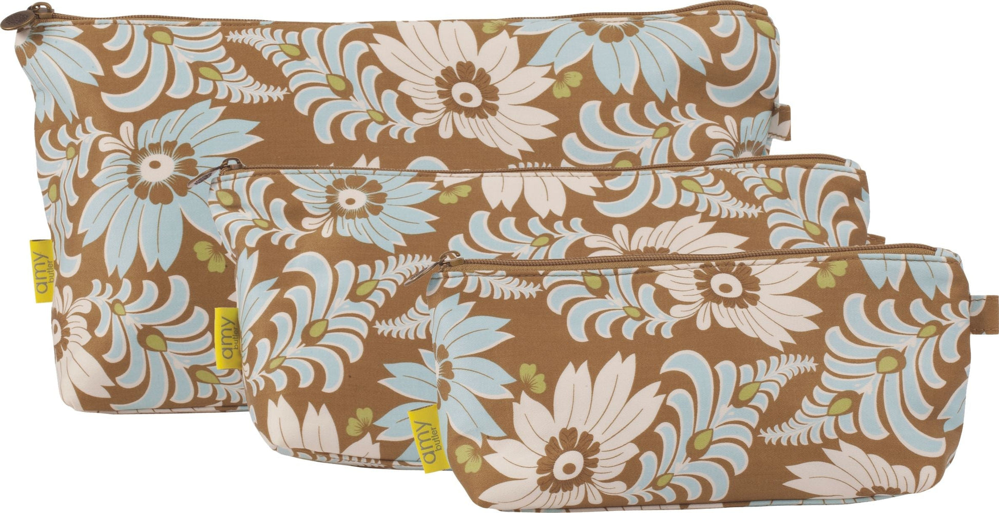 Quite simply the most limitless accessory bags for travel, home organization. Available in three sizes that are easily stowed in your luggage, drawers, purse, and yet look fabulous carried about in plain sight! The squat flat bottoms keep them open while you're digging about. Carry and organize small items inside your purse, diaper bag, or travel bag with the use of this colorful zip-top Amy Butler pouch.