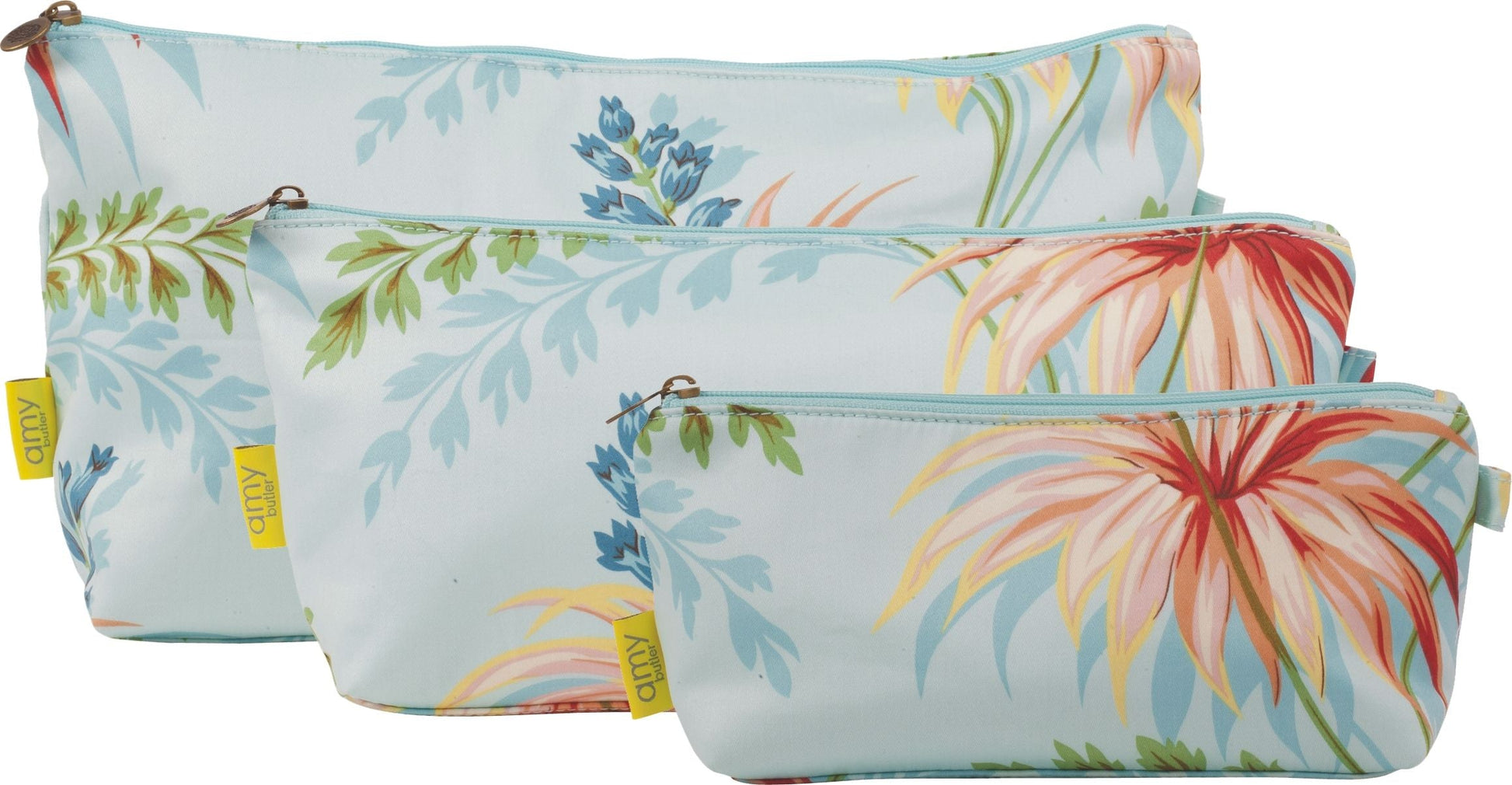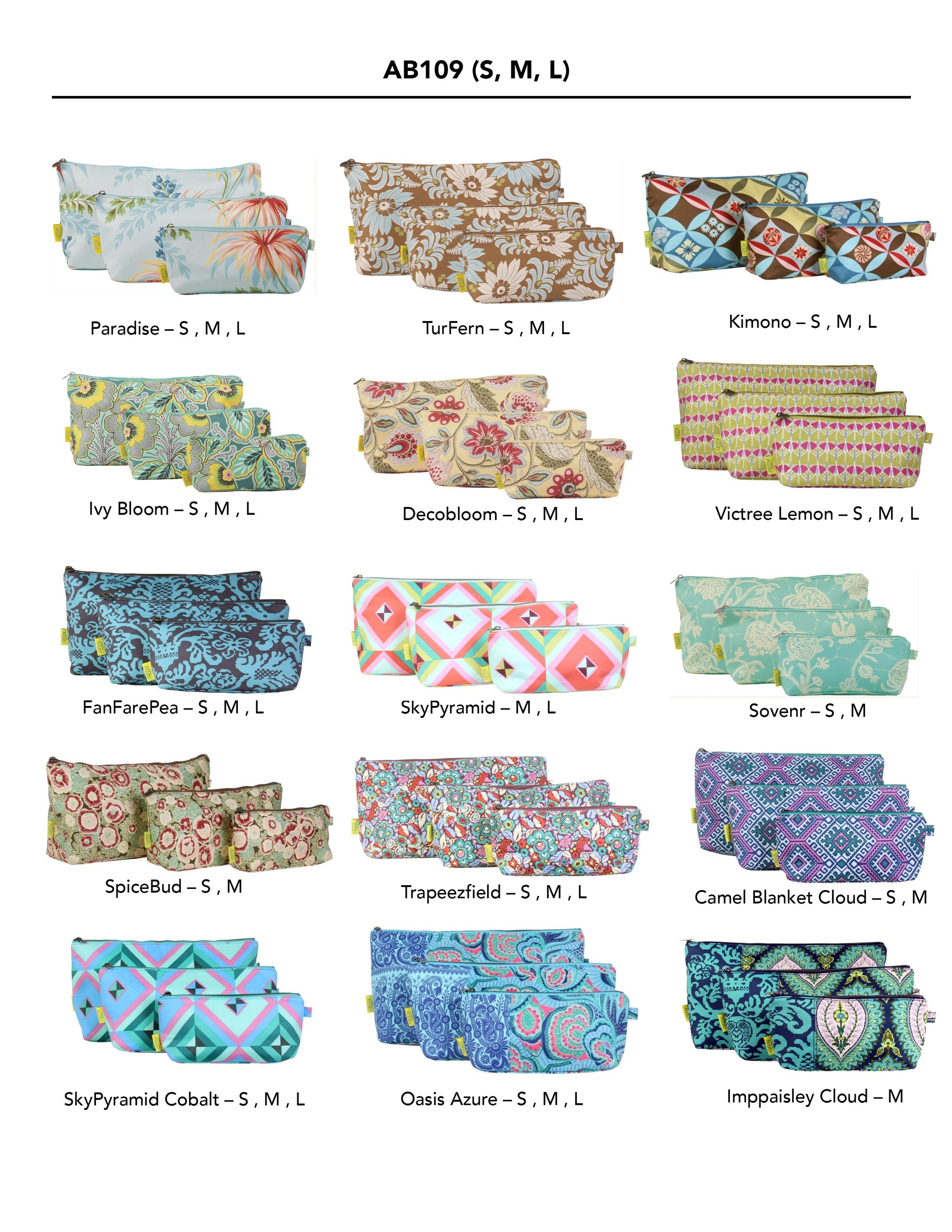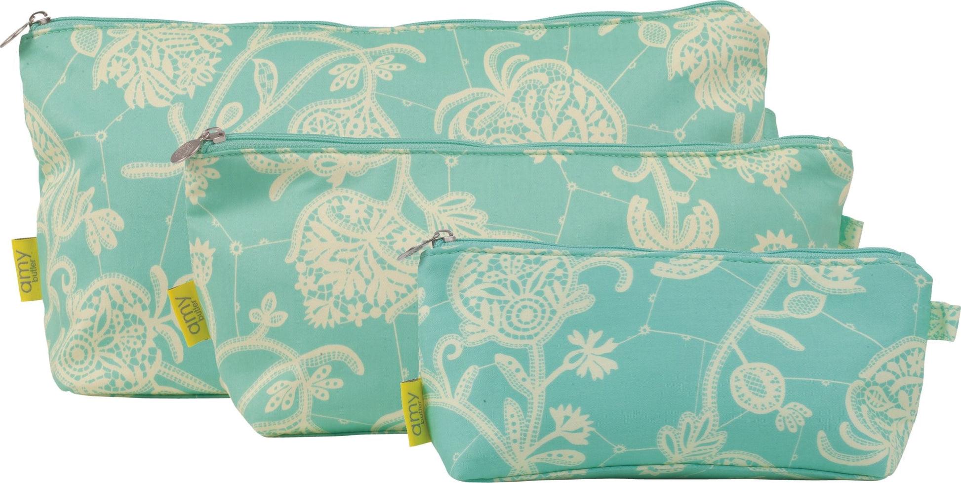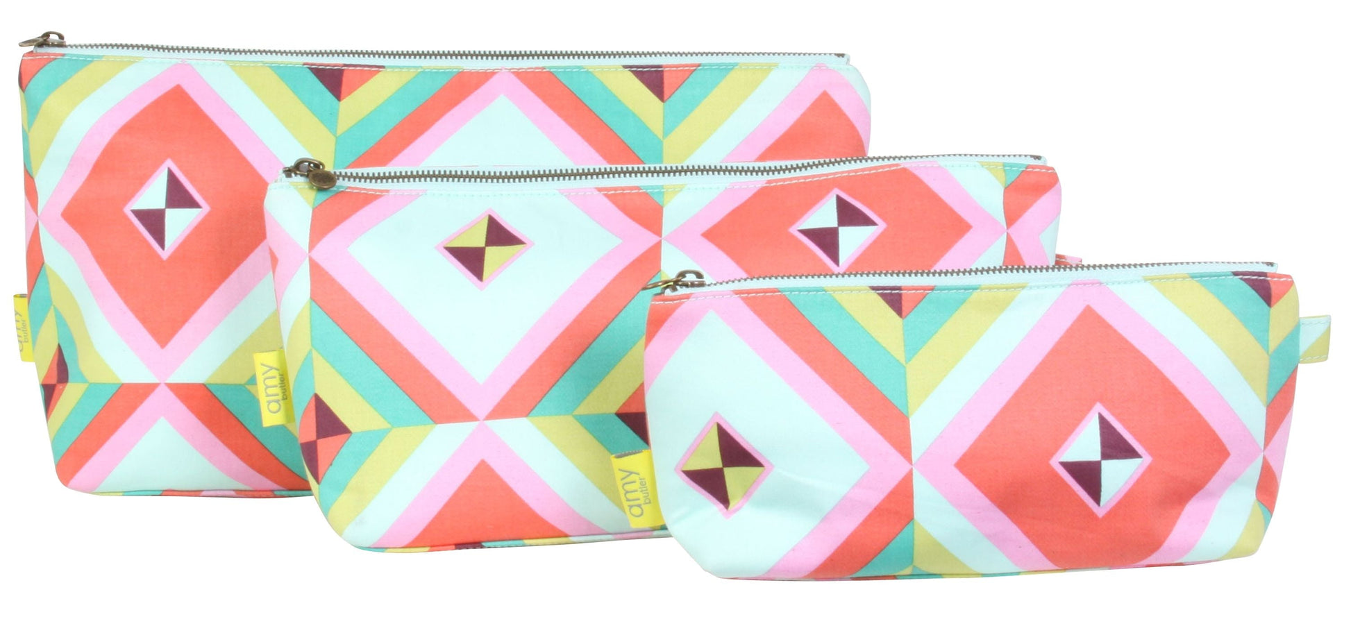 Quite simply the most limitless accessory bags for travel, home organization. Available in three sizes that are easily stowed in your luggage, drawers, purse, and yet look fabulous carried about in plain sight! The squat flat bottoms keep them open while you're digging about. Carry and organize small items inside your purse, diaper bag, or travel bag with the use of this colorful zip-top Amy Butler pouch.