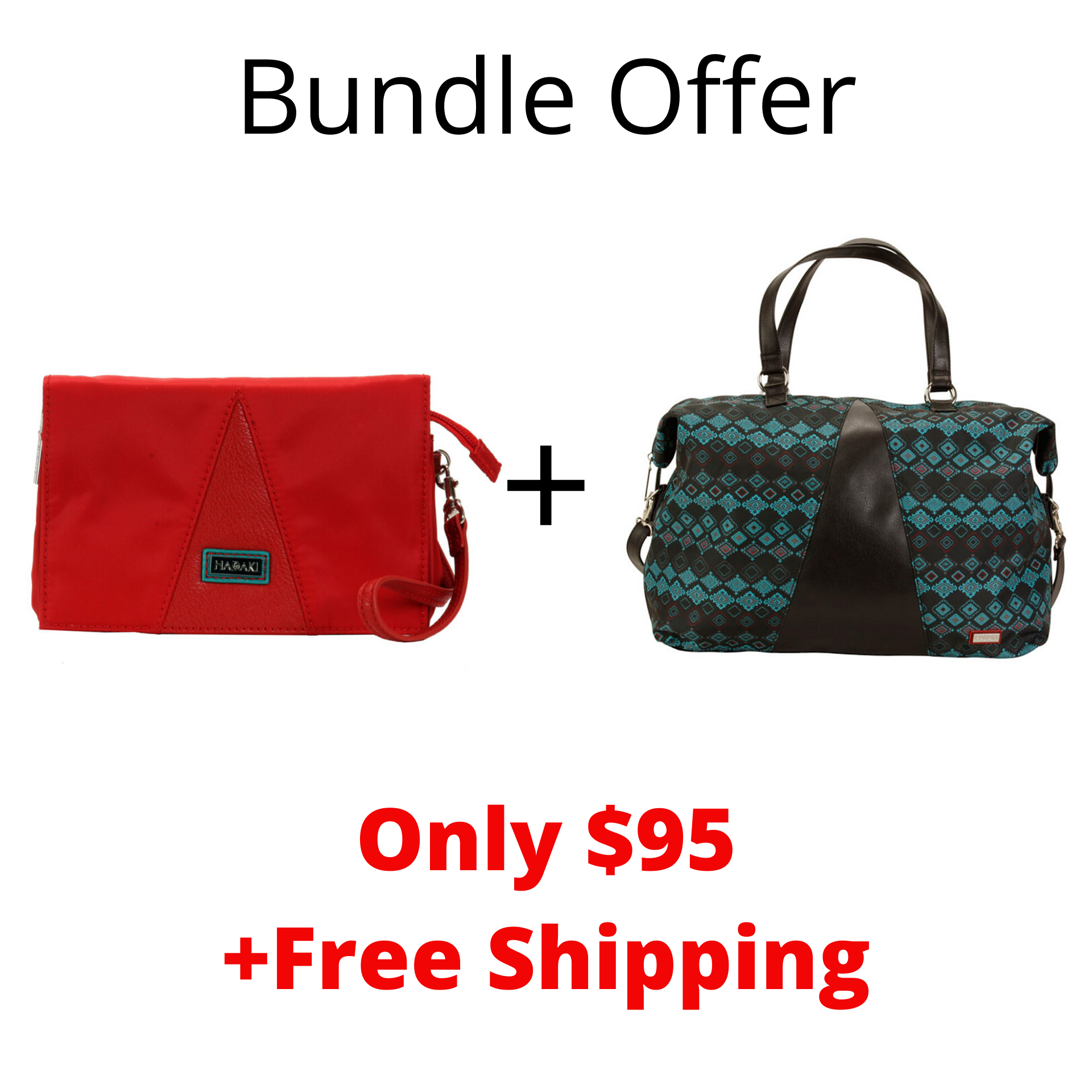 you are getting: Hadaki Valeria's Vegan Women's Expendable Duffle Travel Bag+ Hadaki Vegan Travel Nylon Eco-Friendly Wallet+ Hadaki Brush Pouch and pay only $95 +Free shipping