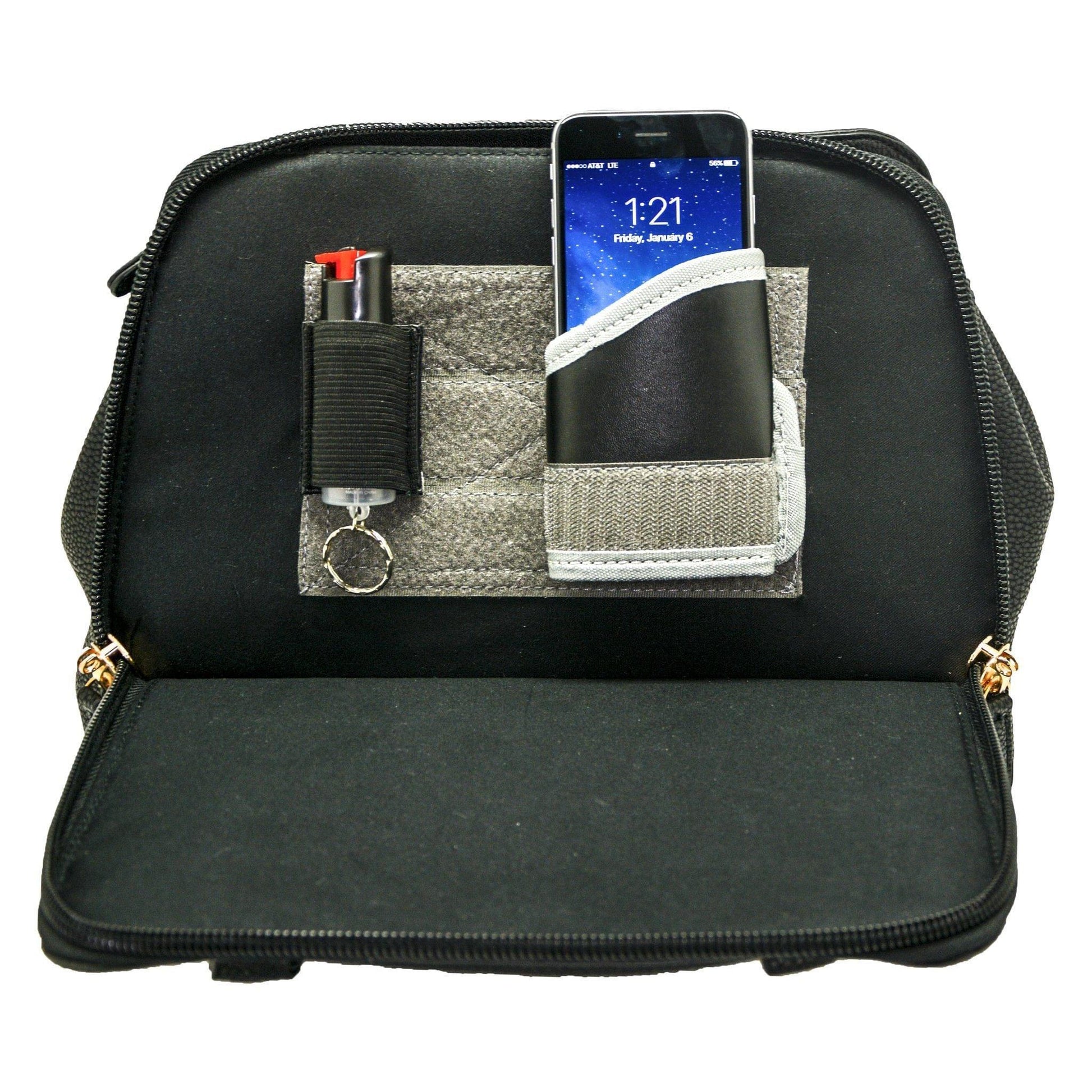 - The three-sided concealed carry pocket is located on the front of the bag and is enclosed with a heavy gauge zipper.