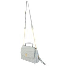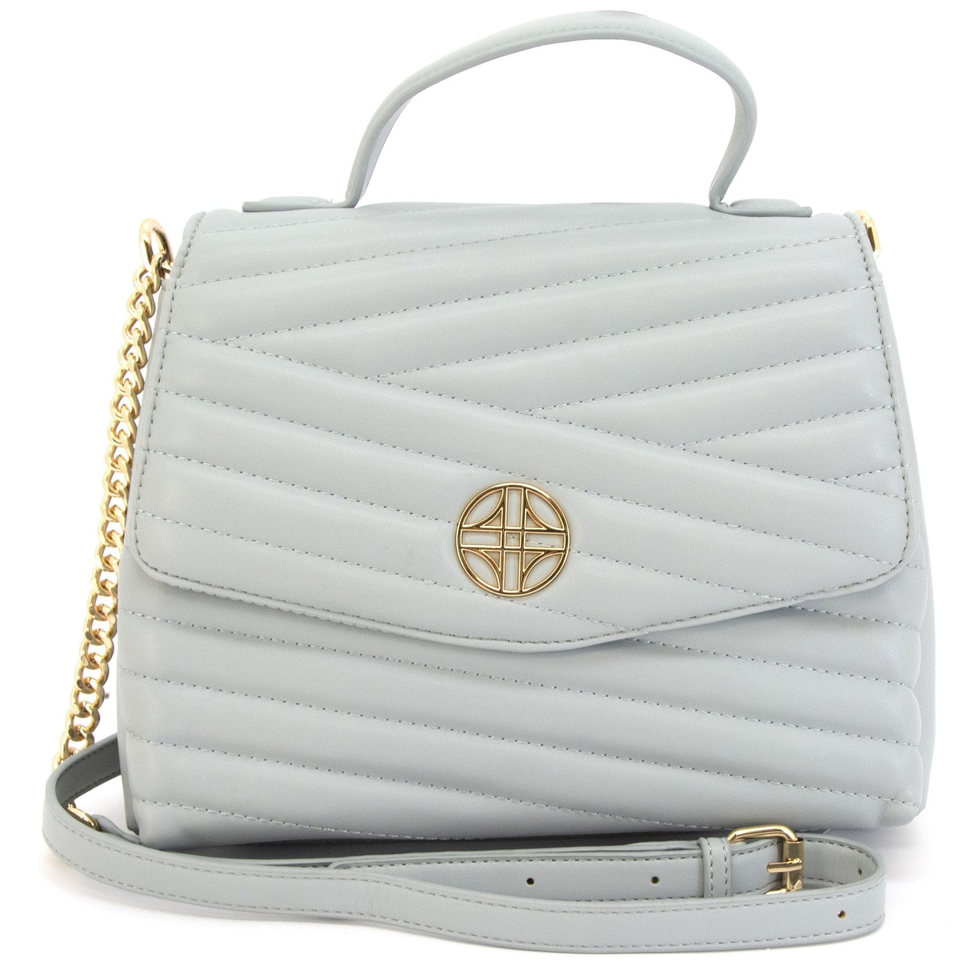Venus is vegan leather, quilted handbag with a half flap front, hidden magnetic snap closure, and delicate gold medallion detail. It features both a vegan leather handled, a curb chain strap, and a structured top handle.
