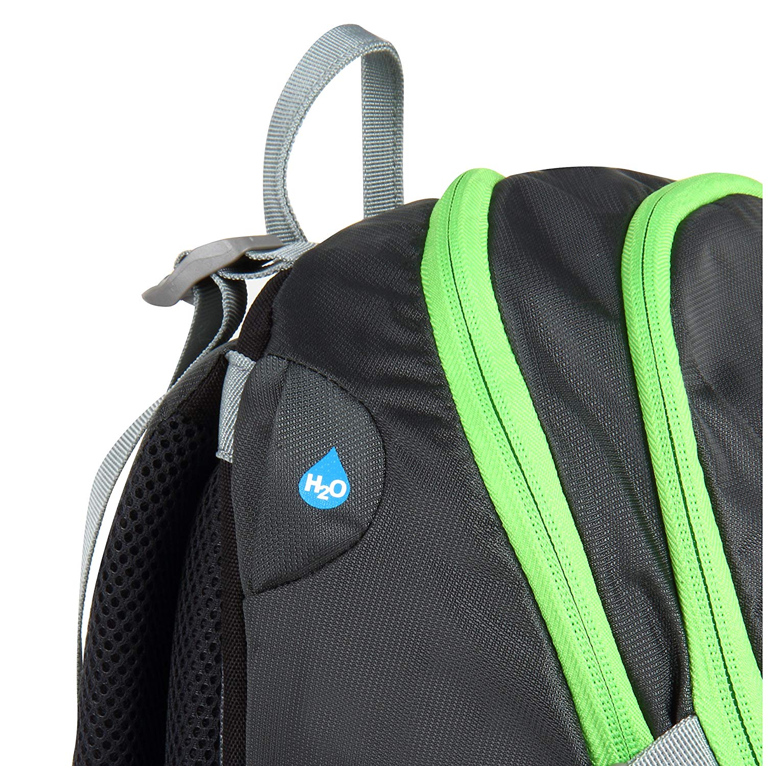 Manufactured with Repreve recycled fabric made from water bottles. The Ecogear Hawksbill 30-liter hiking pack is the perfect daypack for short outings because of the comfort and storage it provides. This pack is hydration ready, and it provides a rain cover and dual side mesh pockets. It also features a vented back system and a hip belt for a snug fit.