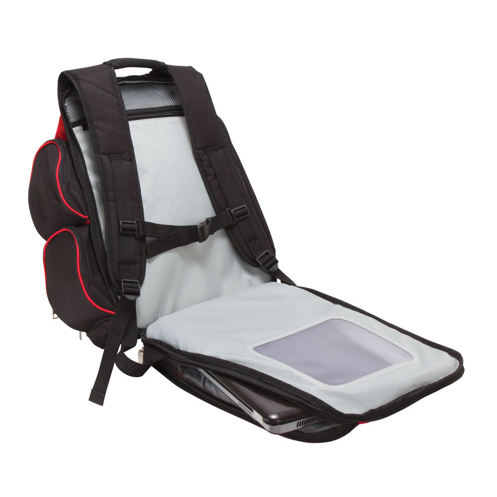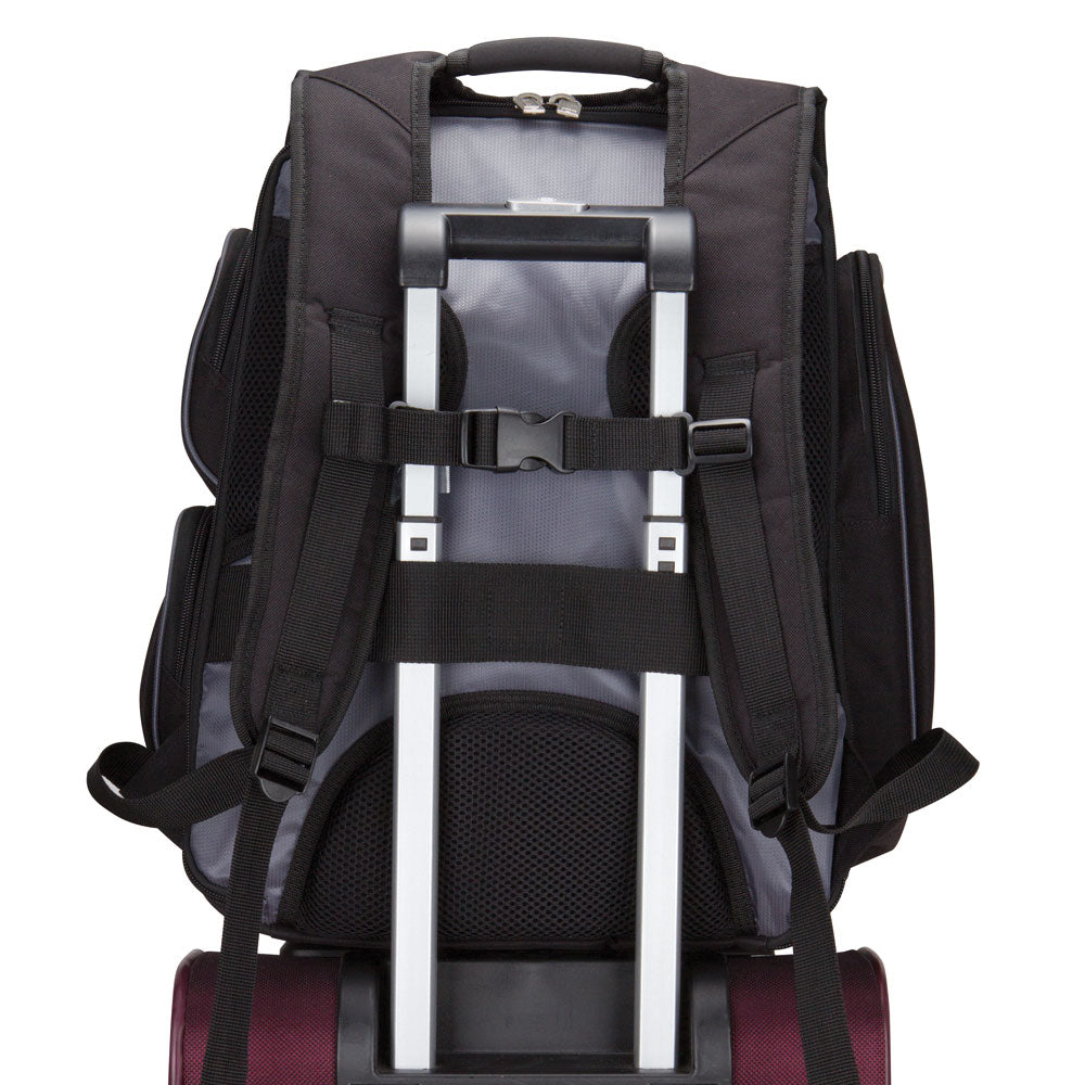 • Back zippered compartment with 17” padded laptop sleeve features Viewpoint System to expedite airport security check-in