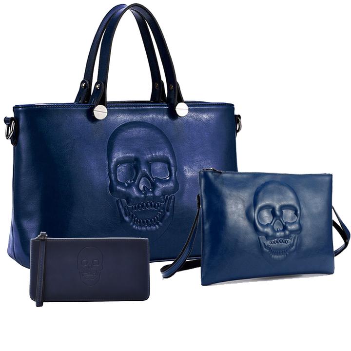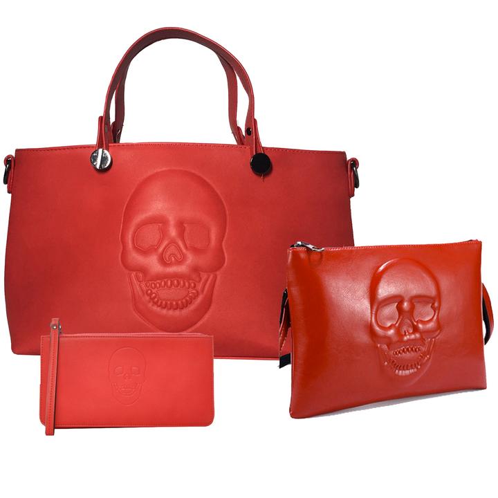 Mechaly Women's Skully Vegan Leather Skull Handbag+Crossbody+Wallet Set