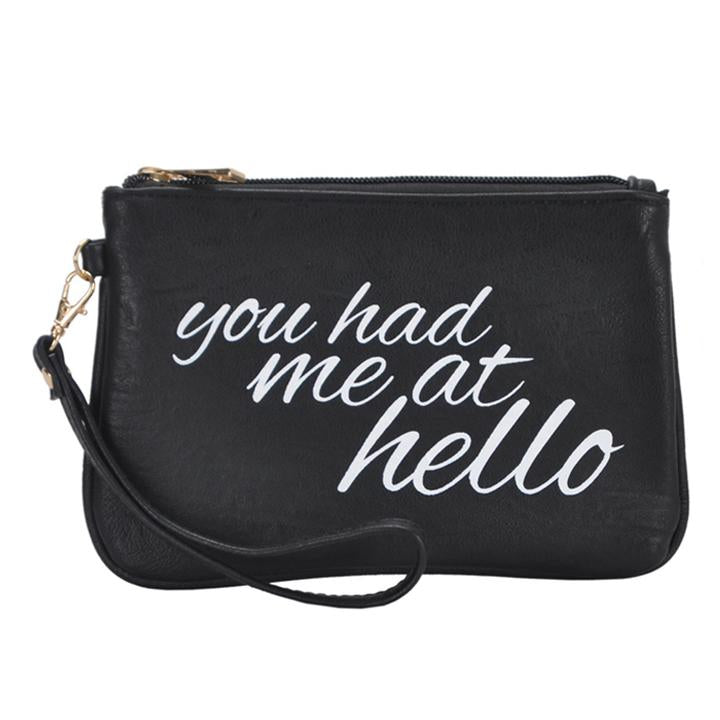 Mechaly Women's Slogan 'You had me at Hello' Black Vegan Leather Wallet