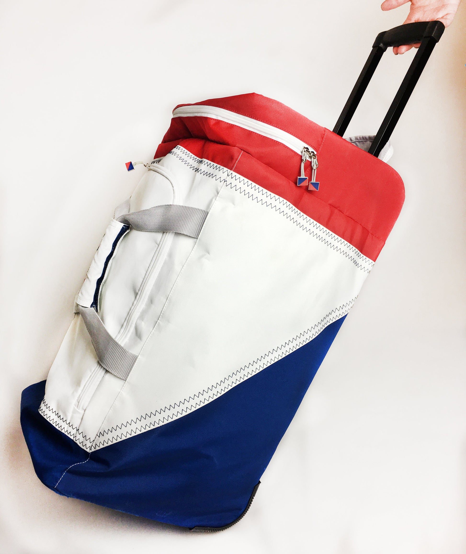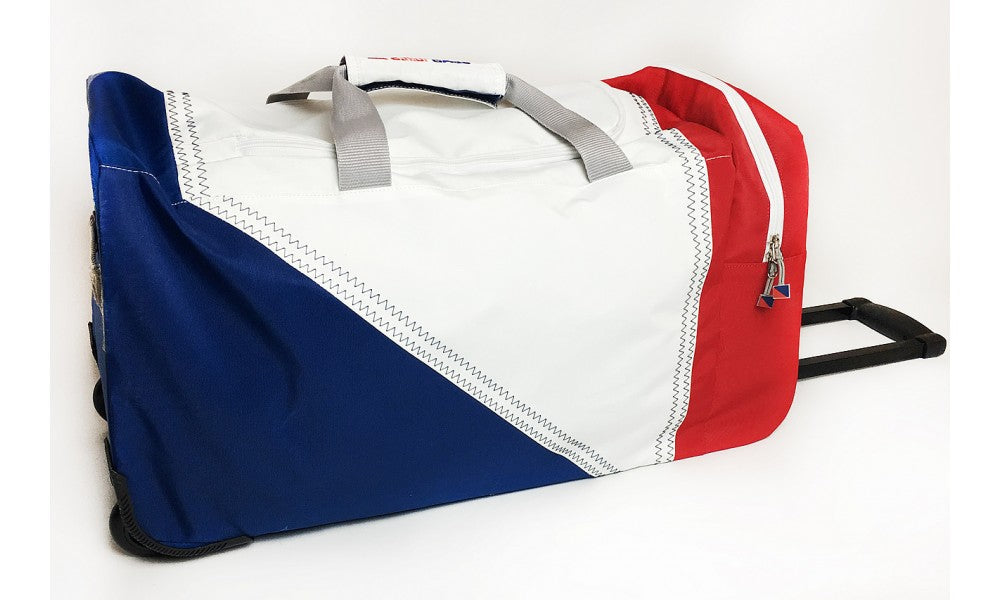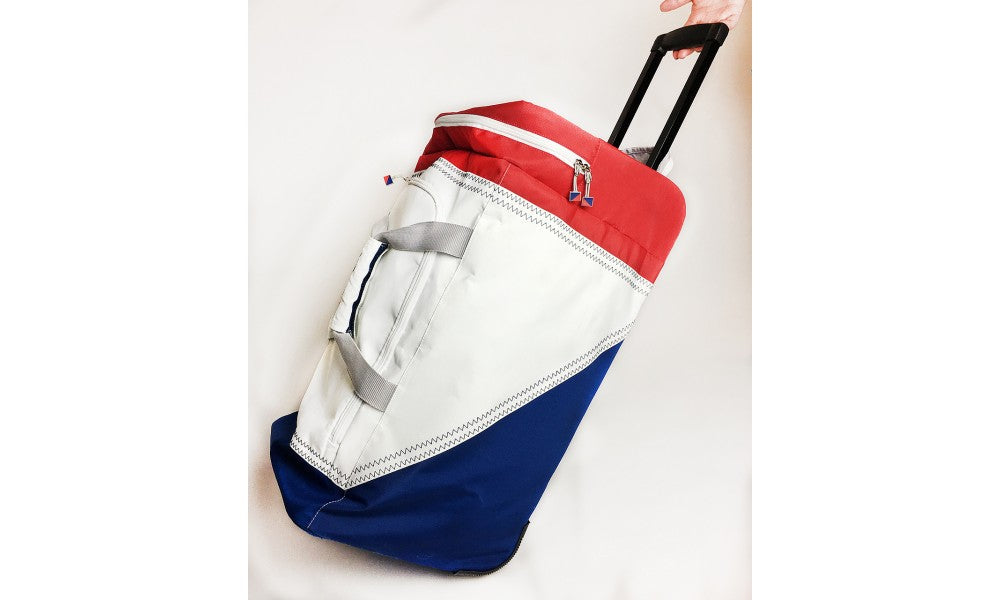 Tri-Sail Rolling Duffel, True Red, White, and Nautical Blue