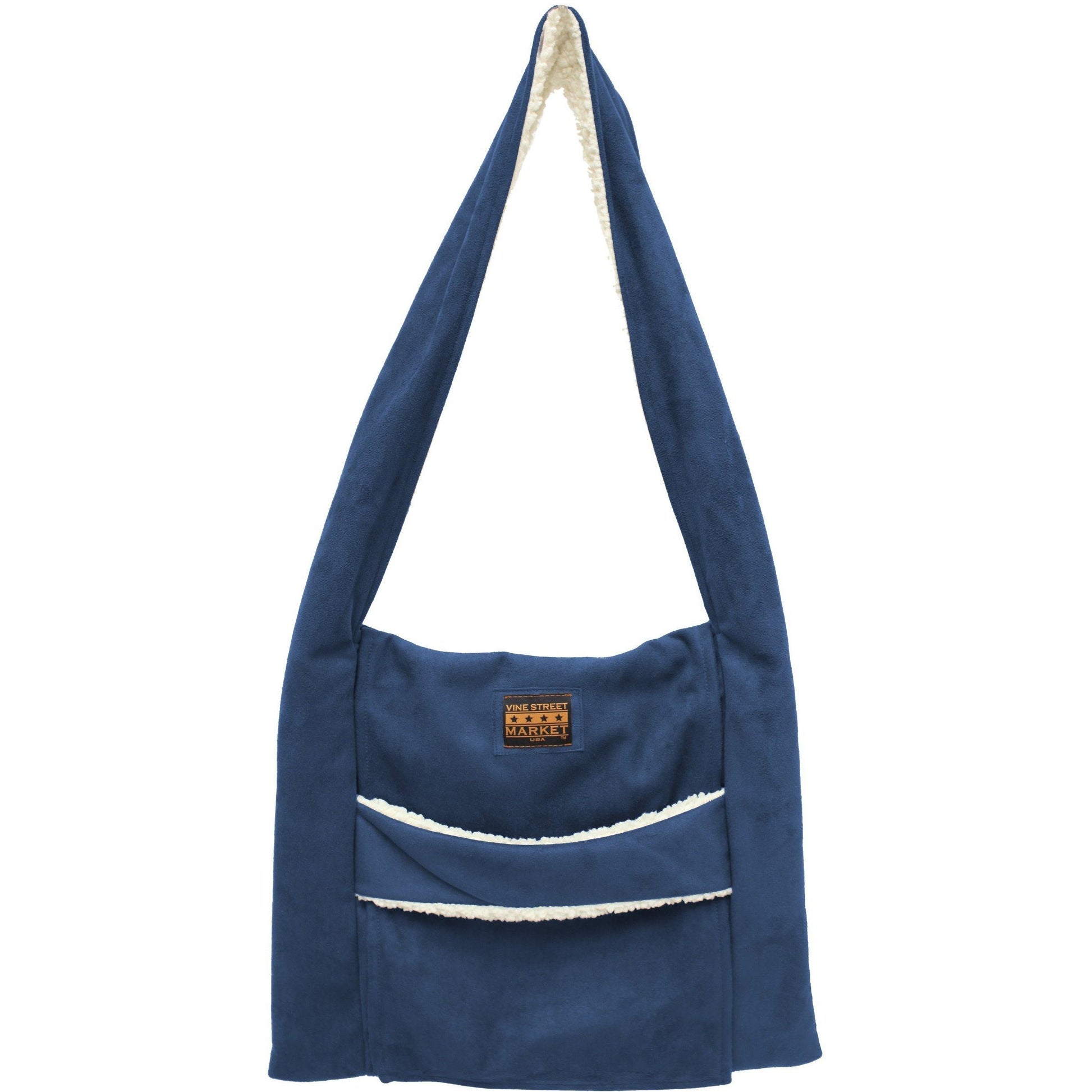 Vine Street Market USA Fold-Over Navy Carryall Vegan Suede Bag Shoulder Messenger Tote