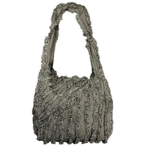 Vine Street Market USA Organic Washed Cotton Denim Chinchilla Vegan Fur Shoulder Bag Tote
