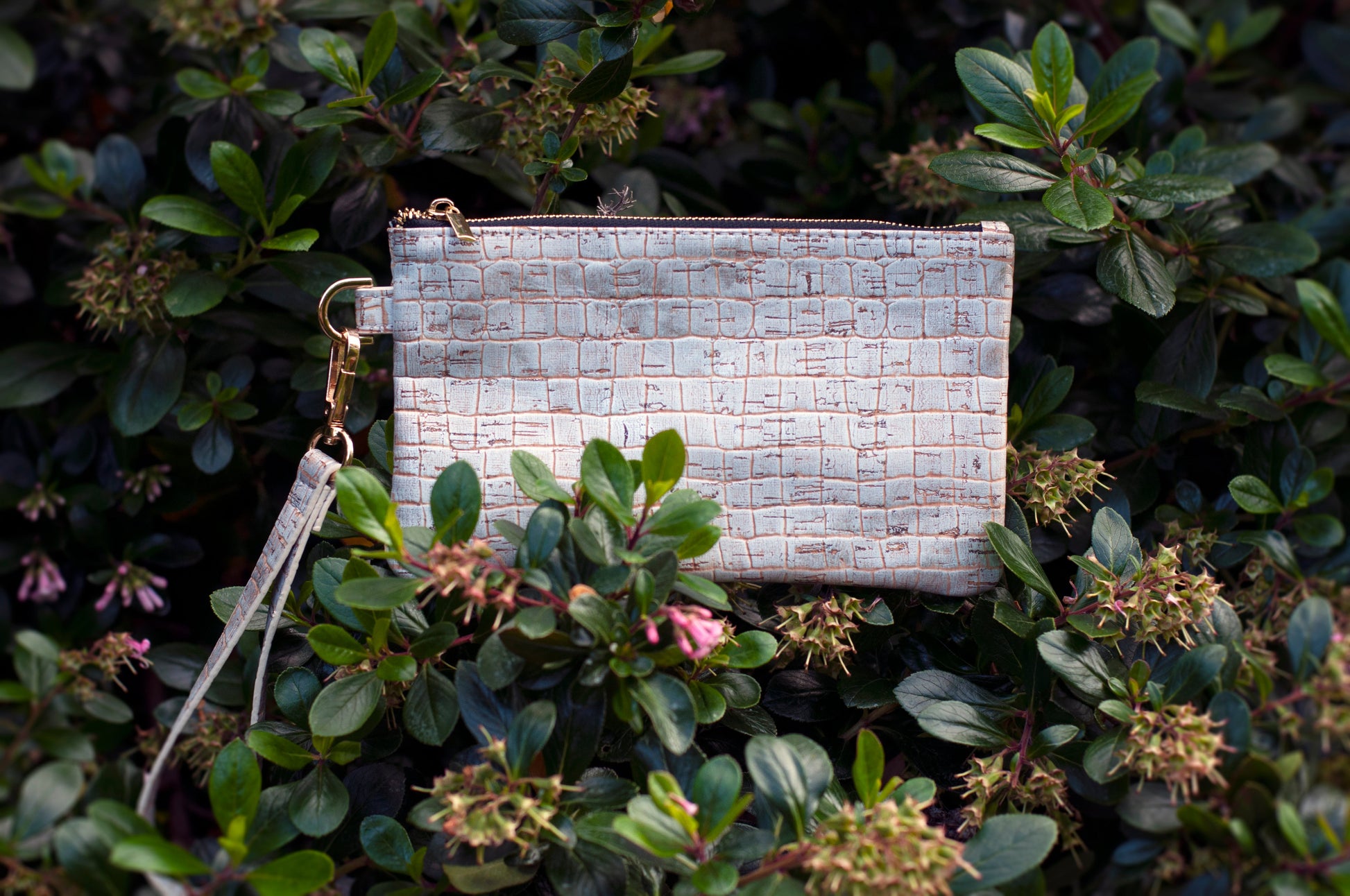 White Rhino Silver Caiman Cork Vegan leather and Eco friendly Wristlet