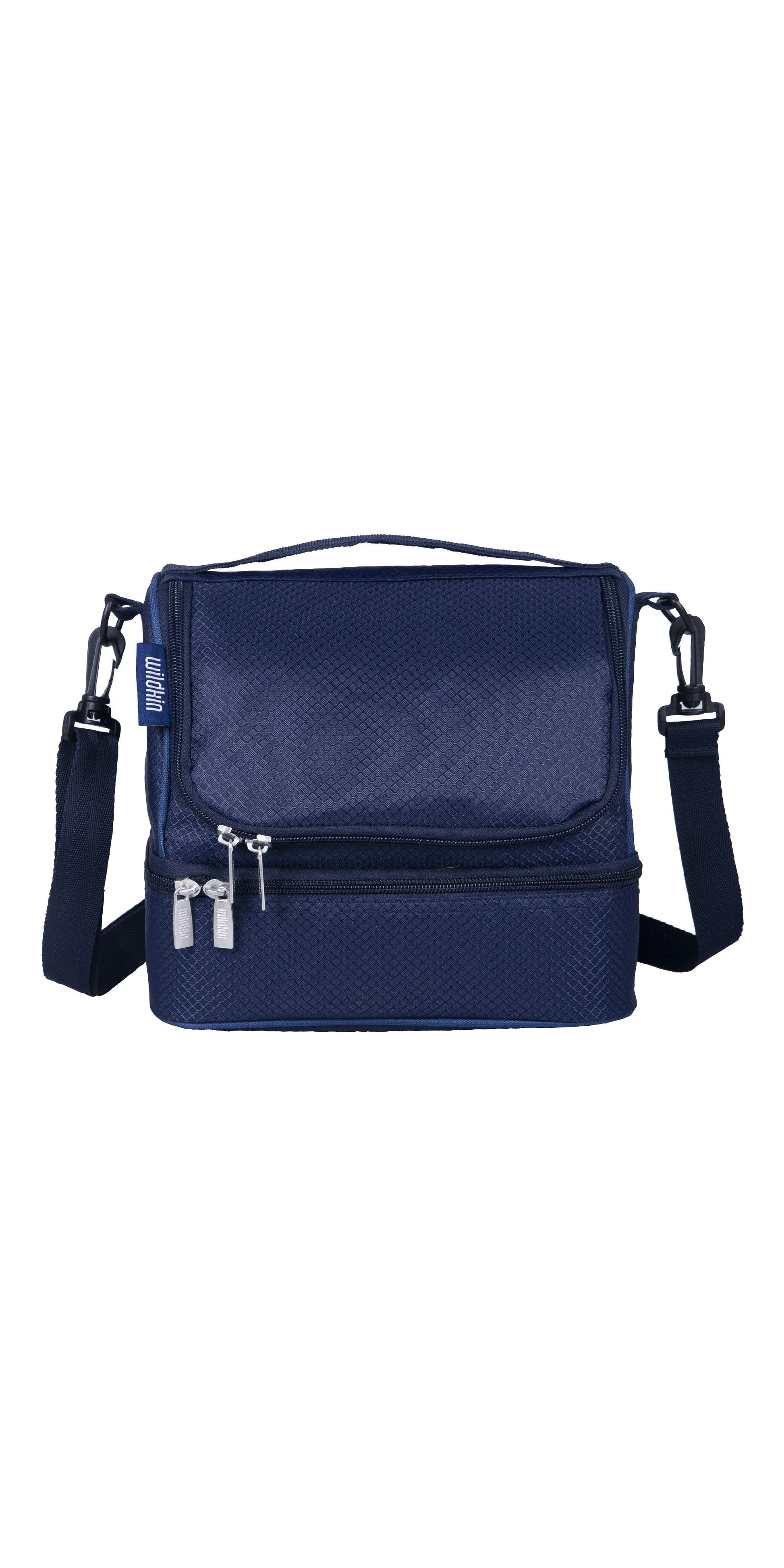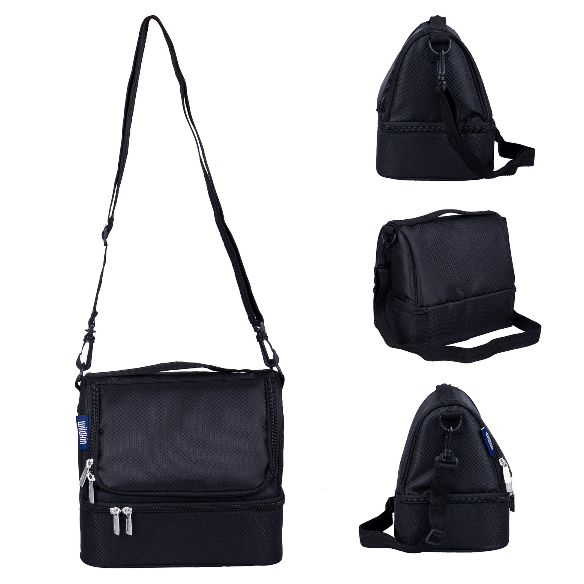 - The lower level includes a dishwasher, microwave-safe container and is great to store the main event. Includes a handy shoulder strap for easy carrying. The Two-Compartment lunch box is expertly designed for any lunchtime adventure.