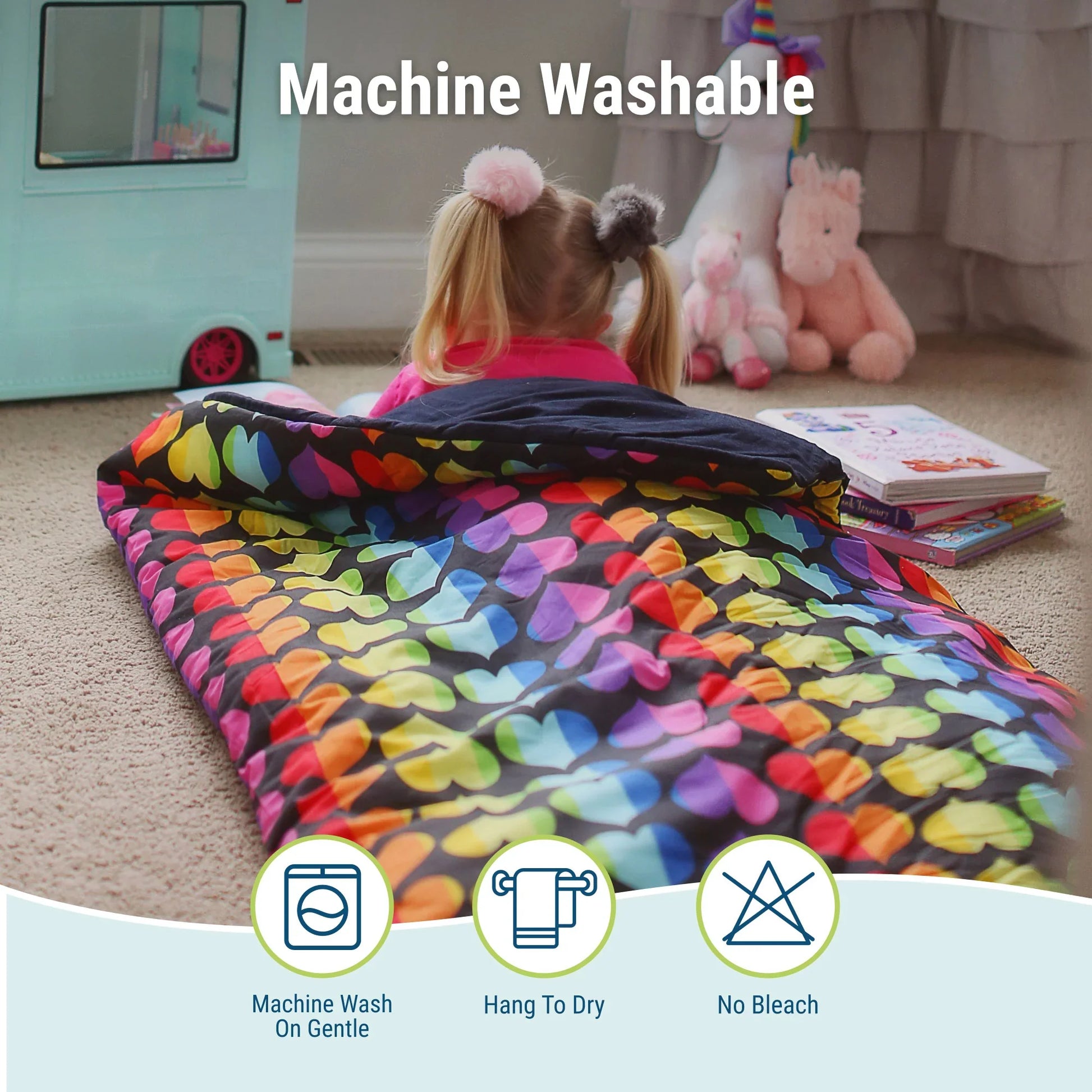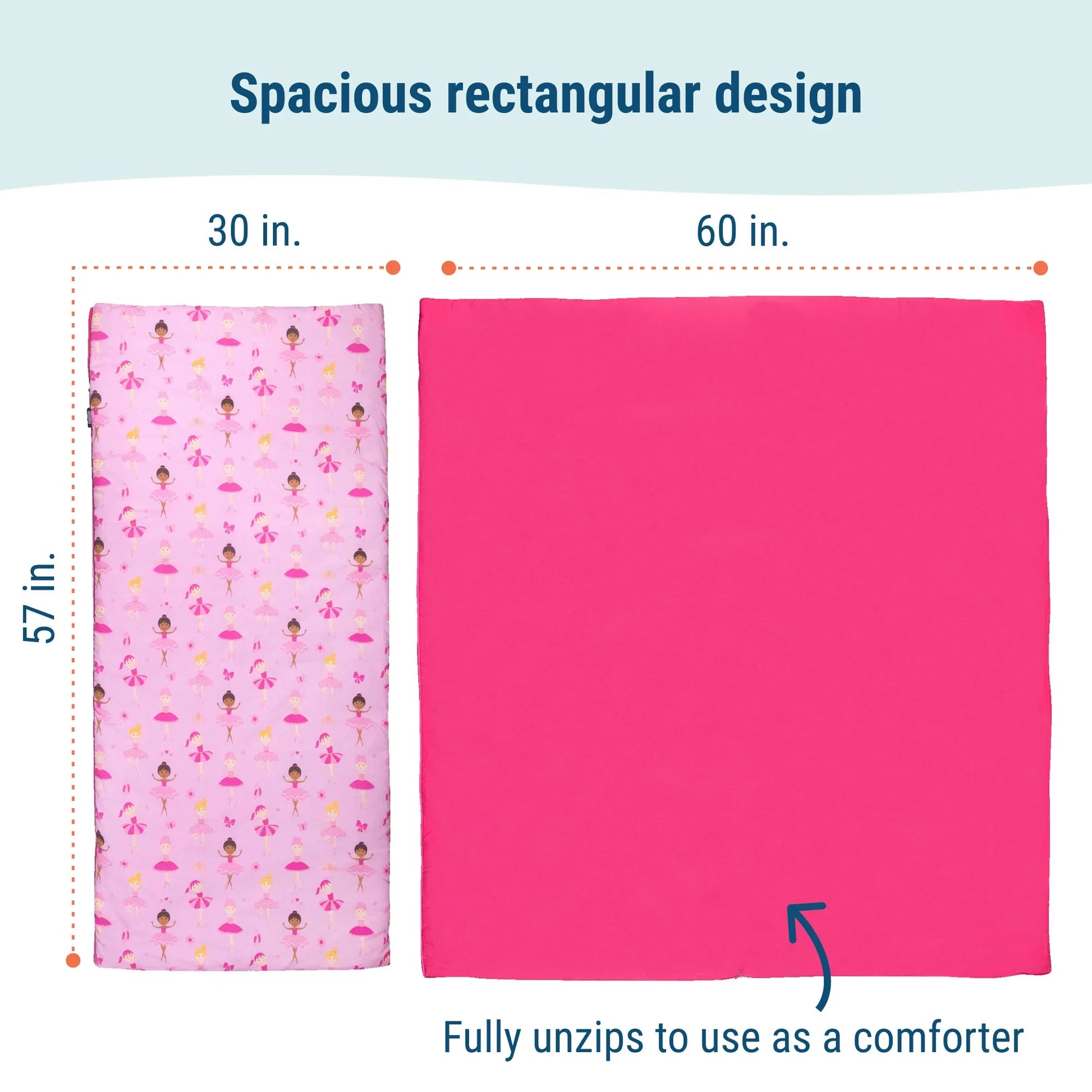 Drifting off to sleep is a breeze when your child is snuggled up in Wildkin’s Original Sleeping Bag for boys and girls! Each Kids Sleeping Bag is made from a super soft blend of cotton and polyester materials to keep your little one extra warm and cozy. The sleeping bag features a roll-up design, complete with elastic storage straps and a coordinating drawstring-close storage bag. Its travel-friendly design makes it easy for your little one to take their Sleeping Bag with them to-and-from sleepover parties, overnight travel to grandma’s house, and more. Each Sleeping Bag was designed to coordinate with other Wildkin gear. From lunch boxes, to duffel bags, to backpacks, your child will love having their favorite designs with them on-the-go. L: 57" L x 30" W.